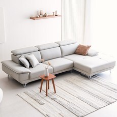 13. 웰퍼니쳐 미스티코 헤드무빙 카우치 4인용 가죽소파 카우치 좌형 방문설치, 라이트베이지